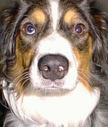 Up close so you can see his blue/brown marbled right eye.